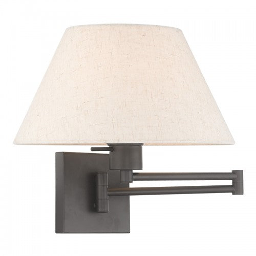 The 40038-07 Swing Arm Wall Lamp is a versatile lighting option, perfect for bedside use or above your favorite reading chair. With a length of 0 inches, a width of 13 inches, and a height of 12 inches, it features a 25-inch extension and is finished in a beautiful bronze tone. The hand-crafted oatmeal fabric hardback shade adds subtle texture and is fully finished inside and out. This lamp requires a single medium base bulb with a maximum wattage of 100W and includes a 3-way switch for ease of use. Designed for damp locations, it's suitable for bedrooms or any space needing additional light.