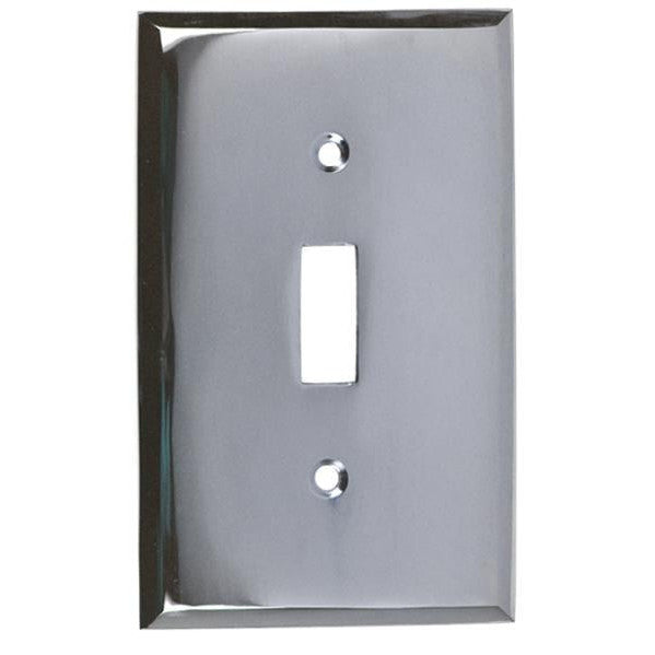 Solid Brass Traditional Switch Plate (Polished Chrome Finish) - measures 4 1/2 inch long and 2 3/4 inch wide. Comes complete with mounting hardware. Available in 11 different configurations and Polished Brass, Antique Brass, Oil Rubbed Bronze, Polished Chrome, Brushed Nickel, and Antique Nickel finishes.