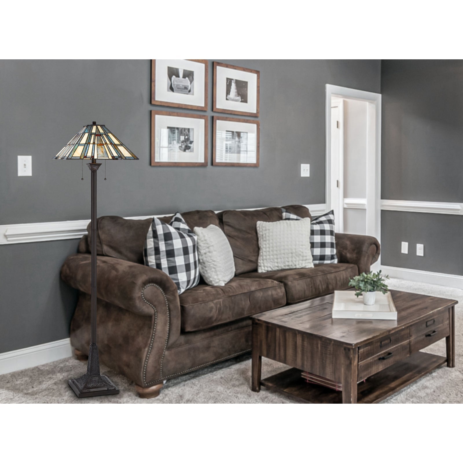 The BO-3100FL Tiffany Floor Lamp offers a vibrant addition to any room, boasting a durable construction of metal and resin. This lamp features a beautifully hand-painted Tiffany glass shade and is equipped with two pull chain switches for easy operation. With a maximum wattage of 100W per bulb and an E26 base, it provides ample illumination. Measuring 60W x 2, it comes with a weighted base to ensure stability. This lamp ships conveniently in one carton and requires assembly. Additionally, it is backed by a one-year warranty, protecting against defects in material and workmanship.