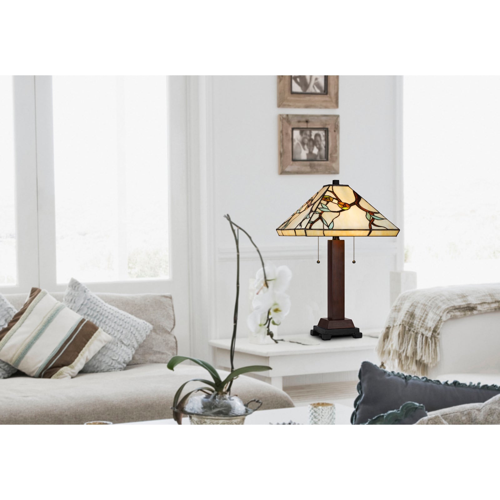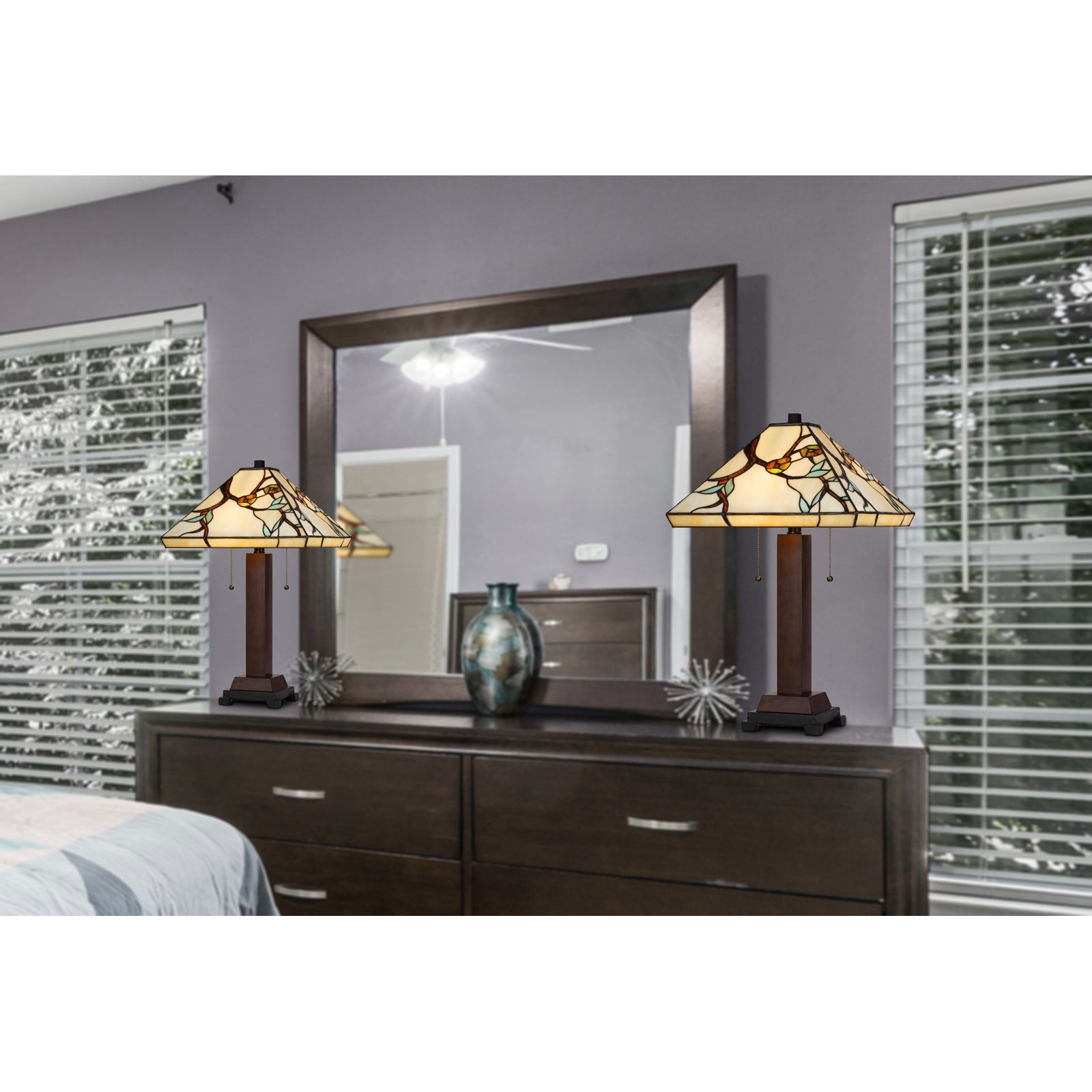 The BO-3101TB Tiffany Table Lamp is a stunning addition to any home, combining both functionality and artistry. This lamp is equipped with two 60W lights, utilizing an E26 bulb base, and features durable resin and metal construction for long-lasting use. The hand-painted Tiffany glass shade enhances its visual appeal, while the pull chain switches provide convenient operation. With a weighted base for added stability, this lamp measures 20.80 inches in length, 10.80 inches in width, and 23.80 inches in height, and it ships in one carton. Ideal for brightening up your living space, it has a one-year warranty for peace of mind.