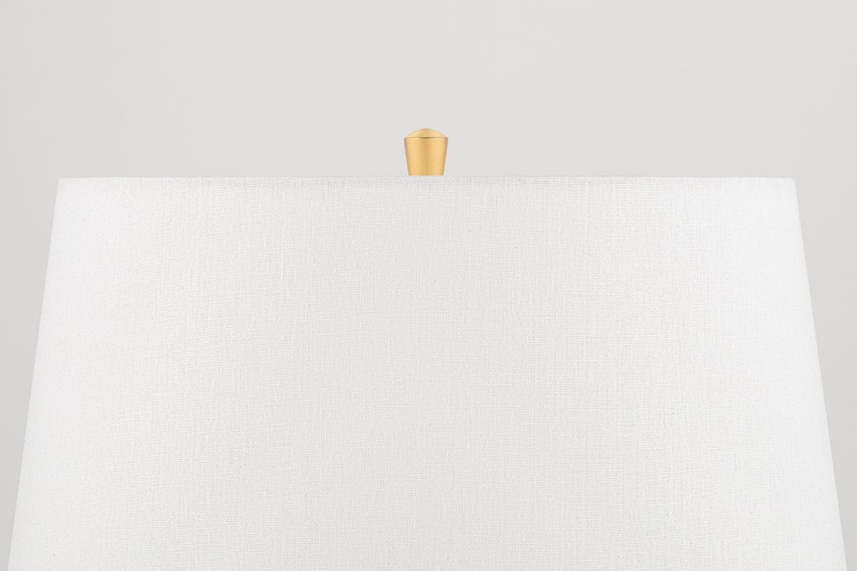 The Katonah Table Lamp by Hudson Valley Lighting is an elegant lighting fixture that combines modern design with functionality. It features a stunning white linen shade that measures 15.50 inches in diameter, perfectly complementing the lamp's height of 23.75 inches. The lamp uses one E26 medium base bulb, with a maximum wattage of 75W, ensuring bright illumination for any space. Its UL Damp rating makes it suitable for use in areas with humidity, such as bathrooms. Available in a luxurious Gold Leaf finish, this lamp is a stylish addition to any décor.