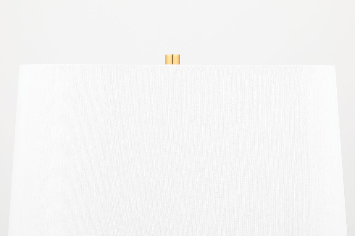 The Kimball Table Lamp by Hudson Valley Lighting is a sophisticated lighting solution that enhances any decor. Featuring a white linen shade that beautifully diffuses light, it stands 29 inches tall with a diameter of 11 inches. This lamp operates with one E26 medium base bulb, providing a maximum wattage of 75W, and is designed for plug-in use. With an electrical rating of UL Damp, it is suitable for various locations, including those with higher humidity. Available in stylish finish options of Aged Brass/Black and Aged Brass/Gray, this lamp complements both modern and traditional interiors.