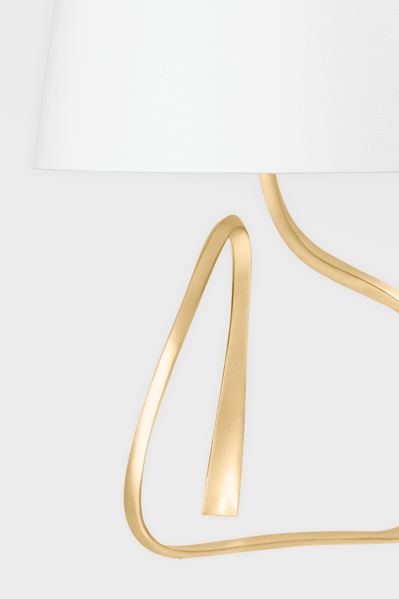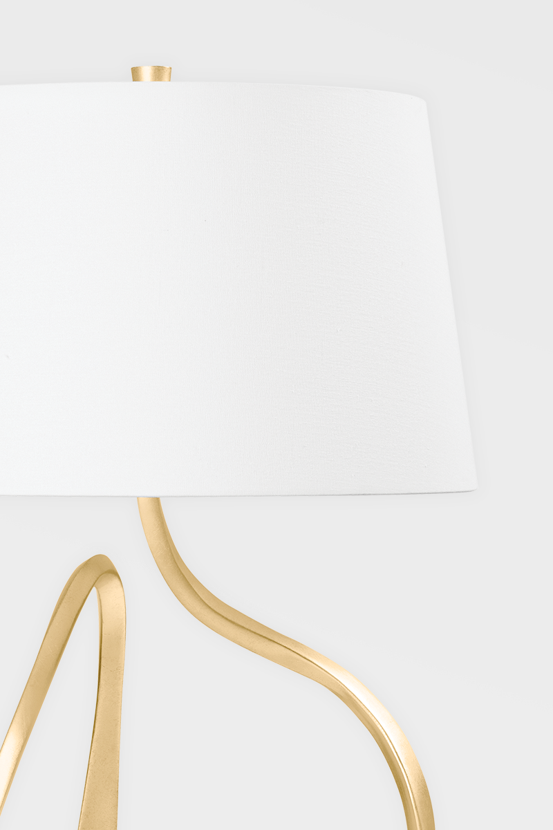 The Tharold Table Lamp from Hudson Valley Lighting offers an elegant touch to any decor with its vintage gold leaf finish. Standing 26.25 inches tall and featuring a diameter of 18 inches, this lamp is topped with a white linen shade that diffuses light beautifully. It accommodates one E26 medium base bulb (not included) with a maximum wattage of 60W, making it suitable for various lighting needs. With its UL Damp rating, it can be used in moisture-prone areas, enhancing both functionality and style.