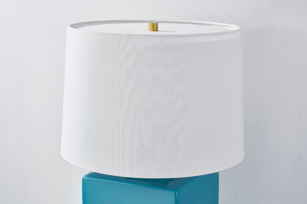 The Hawley Table Lamp by Hudson Valley Lighting is a sophisticated addition to any decor, featuring a stunning linen shade that enhances its elegant design. With a width of 15.00 inches and a height of 21.00 inches, this lamp fits perfectly on desks or side tables. It accommodates one E26 medium base bulb (not included) with a recommended wattage of 15W, ensuring a warm and inviting glow. Available in a beautiful Aged Brass finish with a Ceramic Gloss Turquoise option, this lamp is both stylish and functional, making it ideal for a variety of settings.
