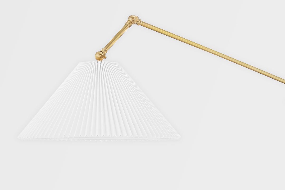 The Dorset Floor Lamp by Hudson Valley Lighting is a stunning addition to any space, featuring a sleek design with a height of 56.25 inches and a width of 16.25 inches. Its elegant white linen shade casts a warm glow and is designed to accommodate one E26 medium base bulb with a maximum wattage of 60W (bulb not included). With a substantial 45.50-inch extension, it is perfect for illuminating larger areas. The lamp has an aged brass finish, adding a touch of sophistication, and holds a UL Damp rating, making it suitable for various environments including those with higher humidity.