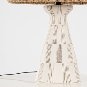 The Palma Table Lamp by Troy Lighting is an elegant addition to any space, featuring a unique string shade that enhances its aesthetic appeal. Standing at 30 inches high with a diameter of 17 inches, this lamp requires a single E26 medium base bulb with a maximum wattage of 15W (not included). It is available in a striking Patina Brass/Ceramic Graphic White finish that complements various décor styles. Since it is not a plug-in lamp, it offers a sleek look without visible wires, and it is classified under the UL Dry rating for safe indoor use.