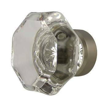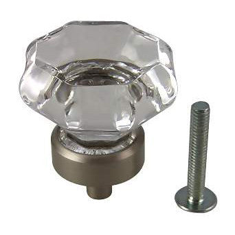 1 3/8 Inch Crystal Octagon Old Town Cabinet Knob (Satin Nickel Base)