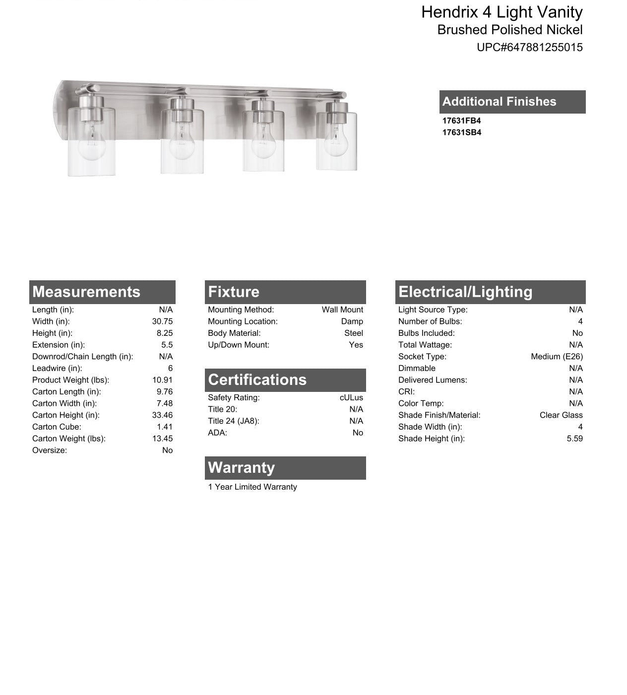Achieve luxurious transitional style with the Hendrix Collection featuring clear glass, wide back plates, and thoughtful detail. The Hendrix vanity collection is available in four sizes from a single sconce to four light vanity.