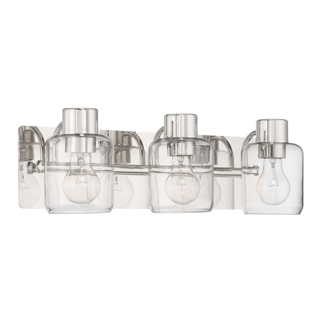 Achieve transitional style with a casual edge with the Rori Collection by Craftmade. Featuring clear glass suspended from arched arms supported by wide rectangular back plates, the Rori vanity collection is available in four sizes from a single sconce to four light vanity.