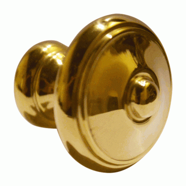 1 1/4 Inch Colonial Button Knob (Polished Brass Finish) - This simple Colonial style knob will add a classic touch to your cabinets and drawers. Measures 1 1/4 inch in diameter with a projection of 1 inch. This product is available in several other finishes and comes complete with mounting hardware.