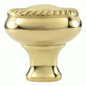 • 1 1/4 Inch Solid Brass Round Georgian Roped Border Knob (Polished Brass Finish)