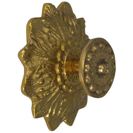 - 2 2/5 Inch Solid Brass Victorian Sunflower Knob (Polished Brass Finish)