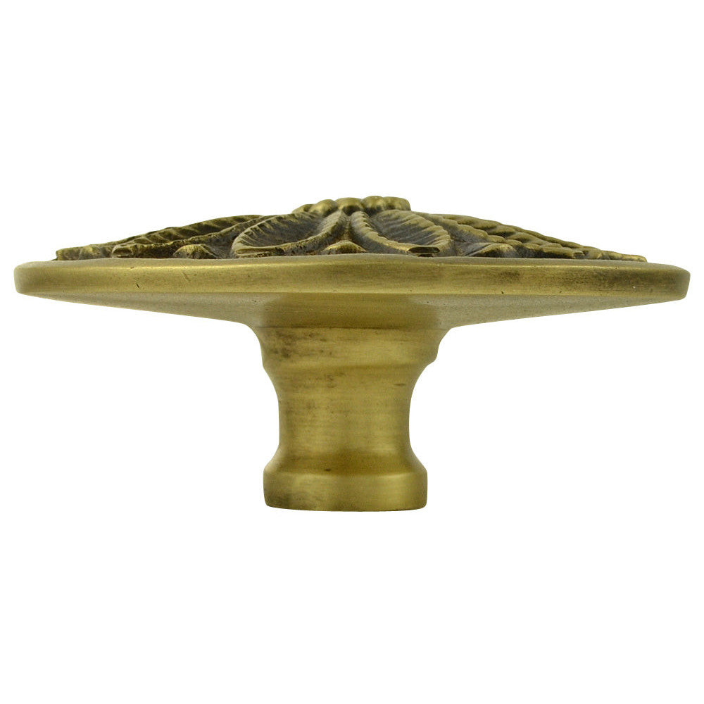 2 3/5 Inch Solid Brass Floral Leaf Cabinet Knob (Antique Brass Finish)