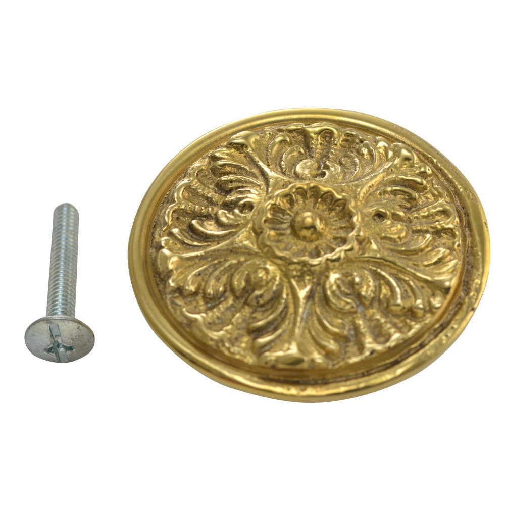 2 Inch Solid Brass Victorian Floral Knob (Polished Brass Finish)