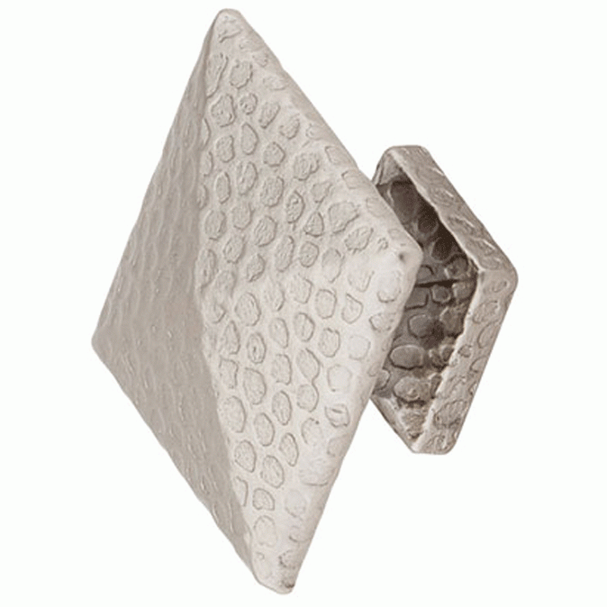 1 3/4 Inch Solid Brass Square Dimpled Knob (Brushed Nickel Finish) - This cabinet knob features an Arts & Crafts inspired dimpled design and comes forged from solid brass. Measures 1 3/4 inch in diameter with a 1 1/8 inch projection. Comes complete with mounting hardware.