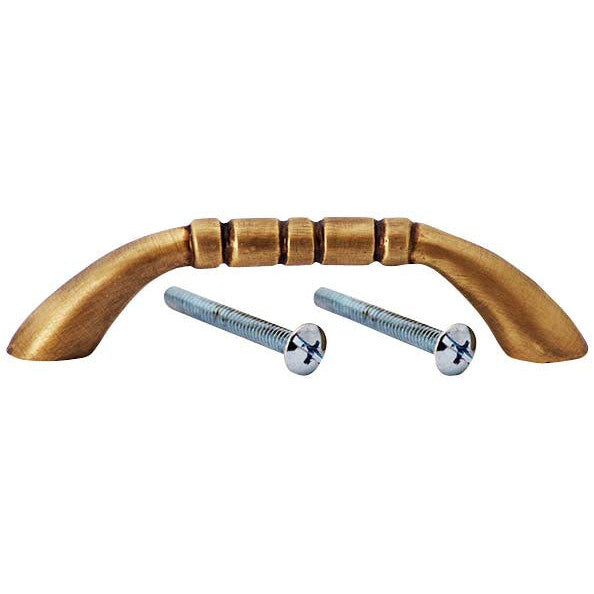 3 1/2 Inch Overall (3 Inch c-c) Solid Brass Traditional Pull (Antique Brass Finish) COPPER MOUNTAIN HARDWARE