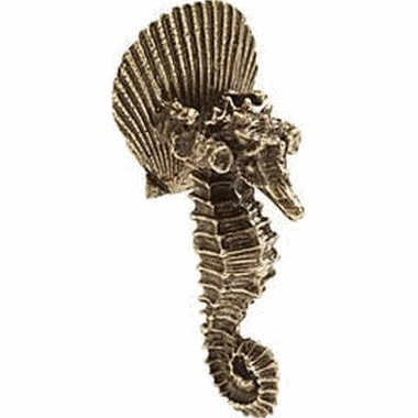 3 Inch Symphony Neptune Seahorse Pendant Pull (Estate Dover Finish) - This gorgeous pendant pull from the Symphony Neptune collection features a stunning seahorse style design with a wonderful estate dover finish. Measures 3 inches wide with a 1 1/4 inch projection. Comes complete with mounting hardware.