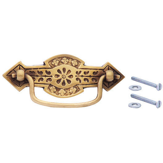 - 4 1/4 Inch Overall (3 Inch c-c) Solid Brass Arrowed Bail Pull (Antique Brass Finish)