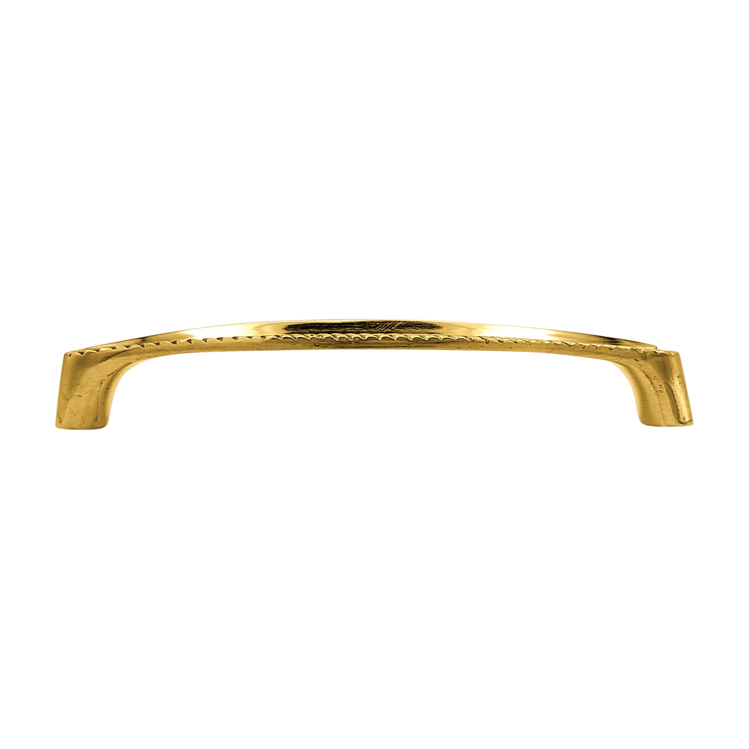 This pull measures 5 1/2 inch long and 5 inch center to center mounting distance (5.00 c-c) with a projection of 2/3 inch. Coordinating knob available. Comes complete with the mounting hardware. Comes in a variety of finishes including Polished Brass, Antique Brass, and Black Bronze.