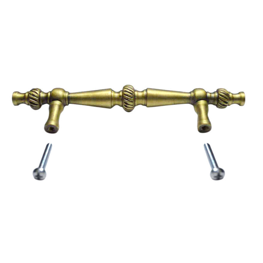 6 1/2 Inch Overall (4 Inch c-c) Solid Brass Georgian Pull (Antique Brass Finish) - Measures 6 1/2 inch long with a projection of 1 1/3 inch. Center to center mounting distance is 4 inch (4.00 c-c). Comes complete with mounting hardware and is available in several finishes.