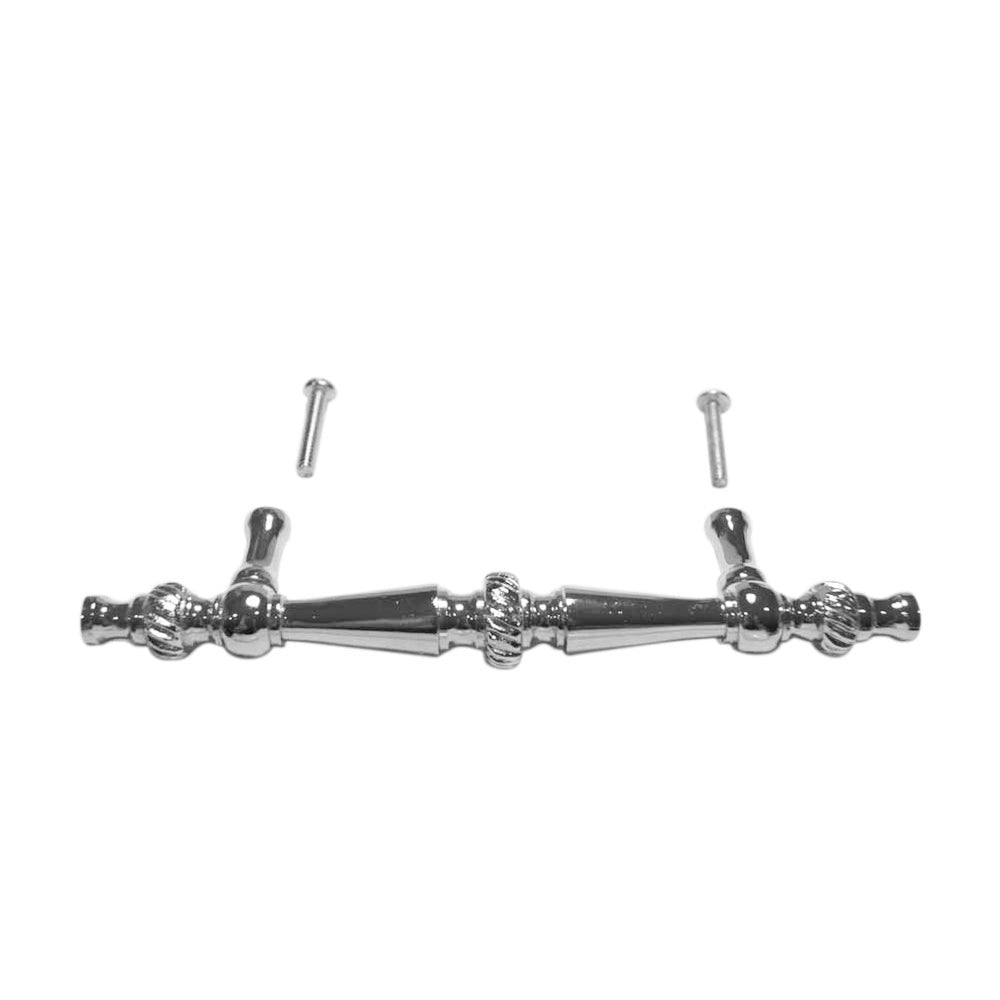 6 1/2 Inch Overall (4 Inch c-c) Solid Brass Georgian Pull (Polished Chrome Finish) - Measures 6 1/2 inch long with a projection of 1 1/3 inch. Center to center mounting distance is 4 inch (4.00 c-c). Comes complete with mounting hardware and is available in several finishes.