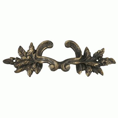 Solid Brass Ornate French Leaves Pull (Antique Brass Finish) - measures 6 inches wide (overall) and 1 3/4 inches tall. Center to center mounting distance is 4 3/8 inches (111.12 mm 4 3/8 c-c). Available in Polished Brass, Antique Brass, Polished Chrome and Black Bronze finishes. Comes complete with mounting hardware.
