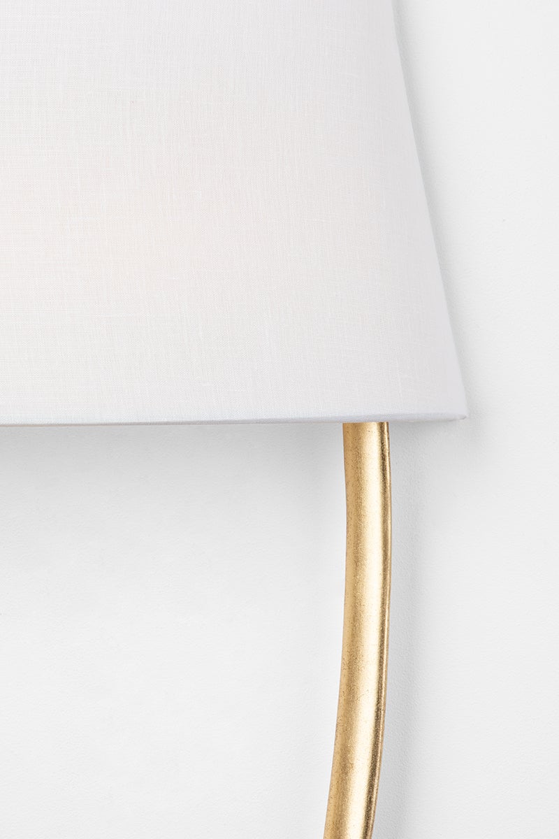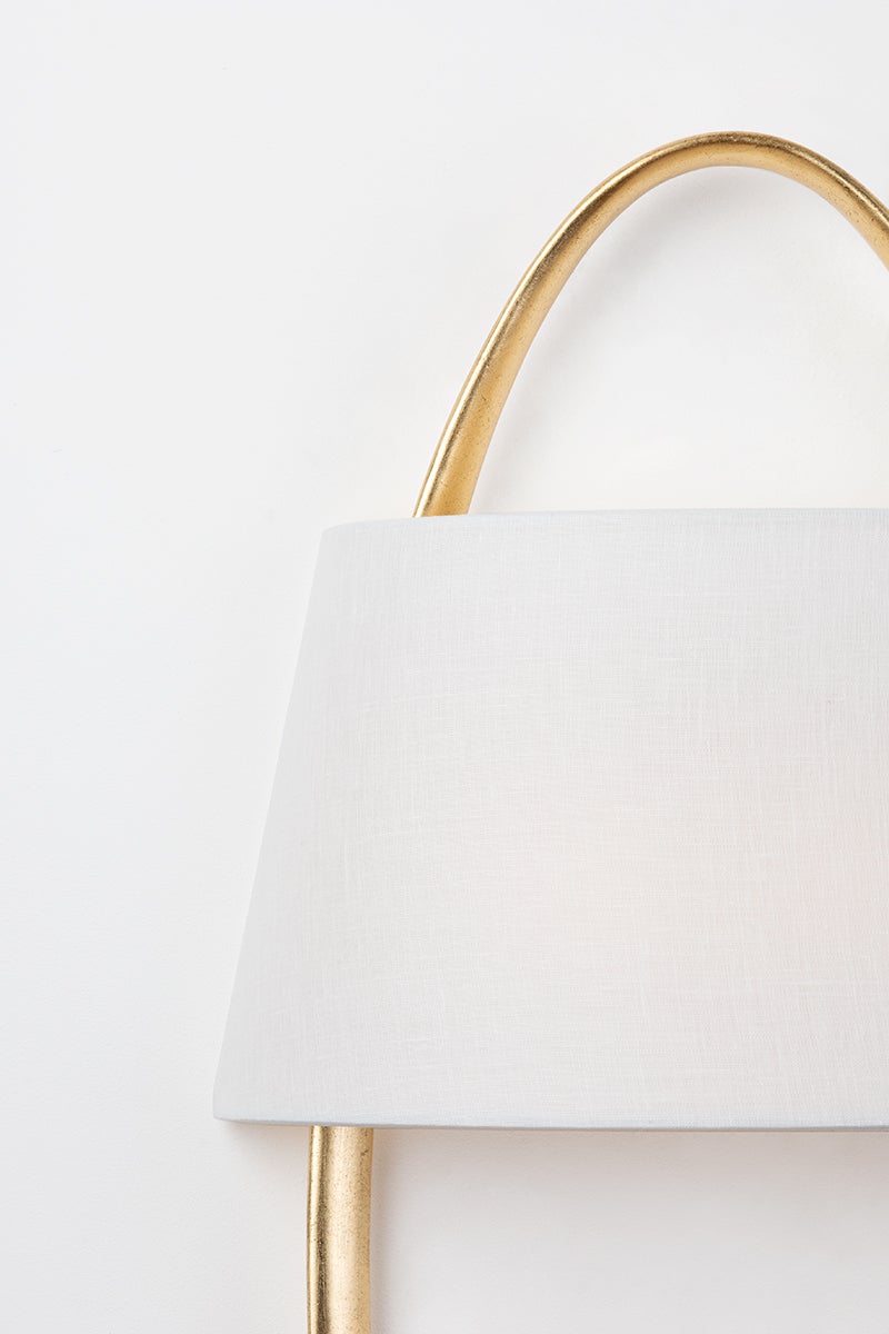 The Dubai Wall Sconce by Corbett Lighting is a sophisticated lighting fixture that combines both style and functionality. With a diameter of 14.00 inches and a height of 30.25 inches, this sconce features a 4.00-inch extension and a top-to-center measurement of 9.25 inches. It is designed to accommodate two E12 candelabra base bulbs with a maximum wattage of 8.00W each. The elegant shade, crafted from linen and acrylic, adds a touch of luxury, and is available in various finishes including Black Silver Leaf and Vintage Gold Leaf. Rated ETL Damp, this sconce is suitable for use in humid environments, making it a versatile addition to any space.
