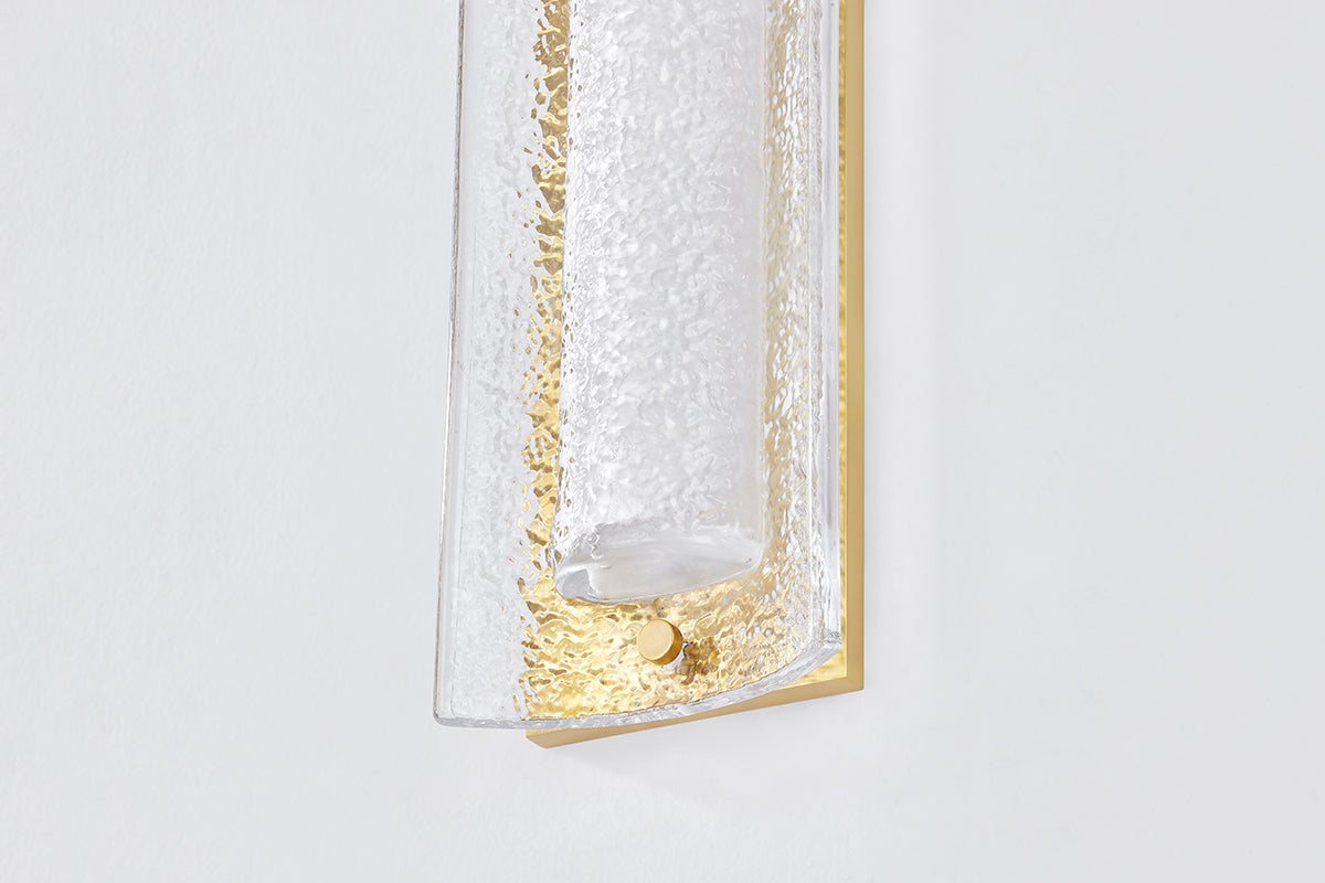 The Philmont Wall Sconce by Hudson Valley Lighting is a beautifully designed lighting solution that combines style and functionality. With a height of 15 inches and a width of 6.75 inches, it features a distinctive piastre glass shade that enhances its elegance. This sconce uses an integrated LED socket with a wattage of 16W, providing excellent illumination with a CRI of 90 and a warm color temperature of 2700K, generating 825 lumens. The Aged Brass finish adds a touch of sophistication, while its ETL Damp rating ensures it can be used in various settings, including places with increased moisture. The sconce is also field serviceable, offering ease of maintenance.
