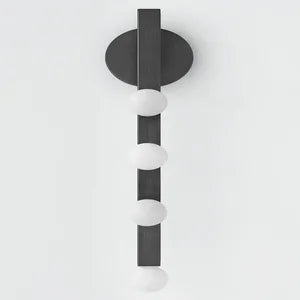 The Sutter Wall Sconce by Mitzi is a stunning addition to any decor, featuring a chic Graphite or Vintage Gold Leaf finish. Measuring 4.75 inches in diameter and 21.50 inches in height with a 6.00-inch extension, this sconce is designed to house four E12 candelabra base bulbs, with a wattage of 8.00W each. The 3.50-inch distance from top to center ensures a balanced and elegant look. Its UL Damp rating makes it perfect for use in humid environments, elevating spaces like bathrooms or outdoor patios.
