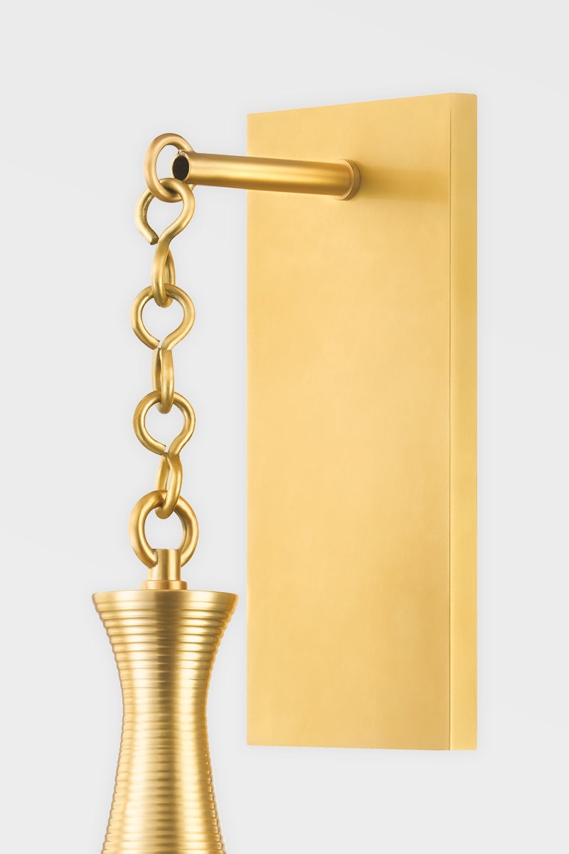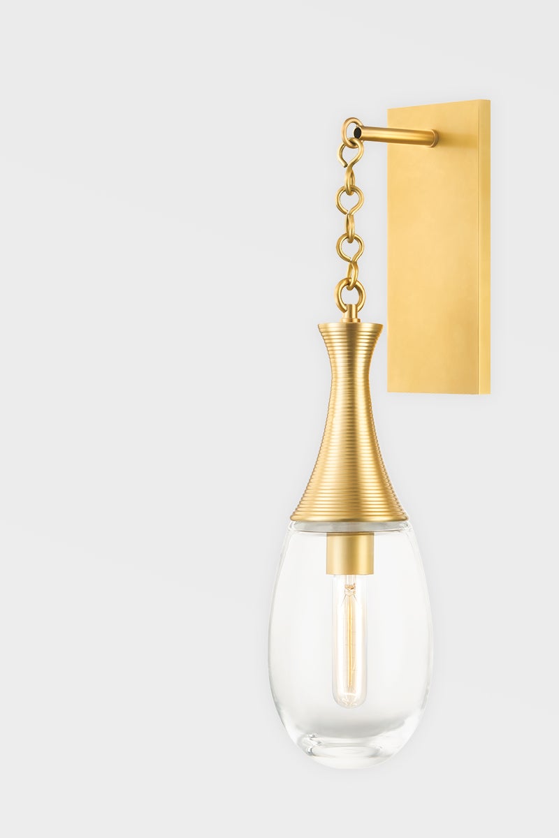 The Southold Wall Sconce by Hudson Valley Lighting is an elegant blend of style and functionality, perfect for enhancing any space. This sconce features a clear glass shade that gracefully diffuses light and requires one E26 medium base bulb (not included), with a maximum wattage of 60W. It boasts dimensions of 5.50 inches in width, 22.00 inches in height, and extends 7.00 inches from the wall. The fixture has a top-to-center height of 10.00 inches and is rated for UL Damp, making it suitable for areas exposed to moisture. Available in two stunning finish options - Aged Brass (AGB) and Black Brass (BBR) - this sconce complements any decor.