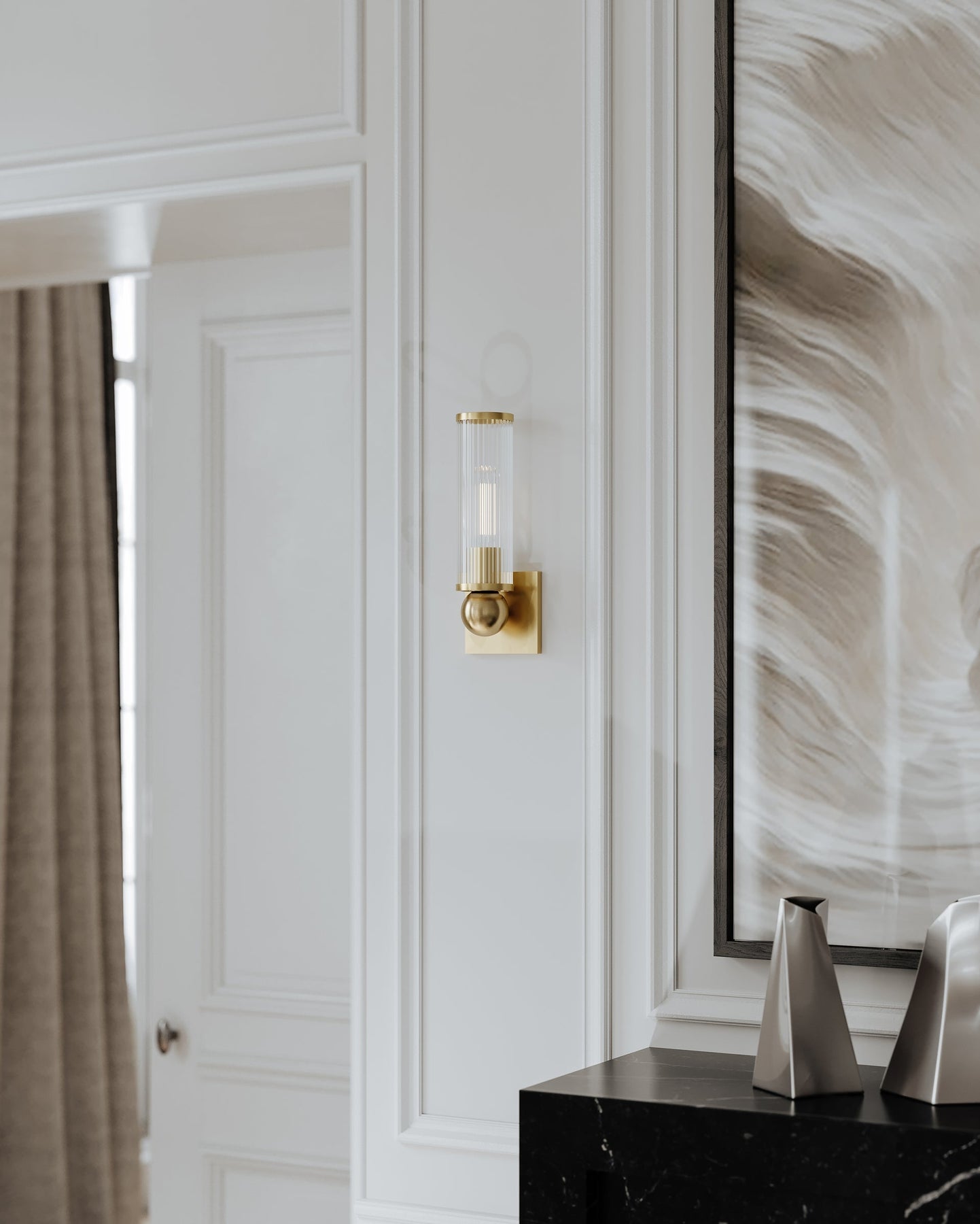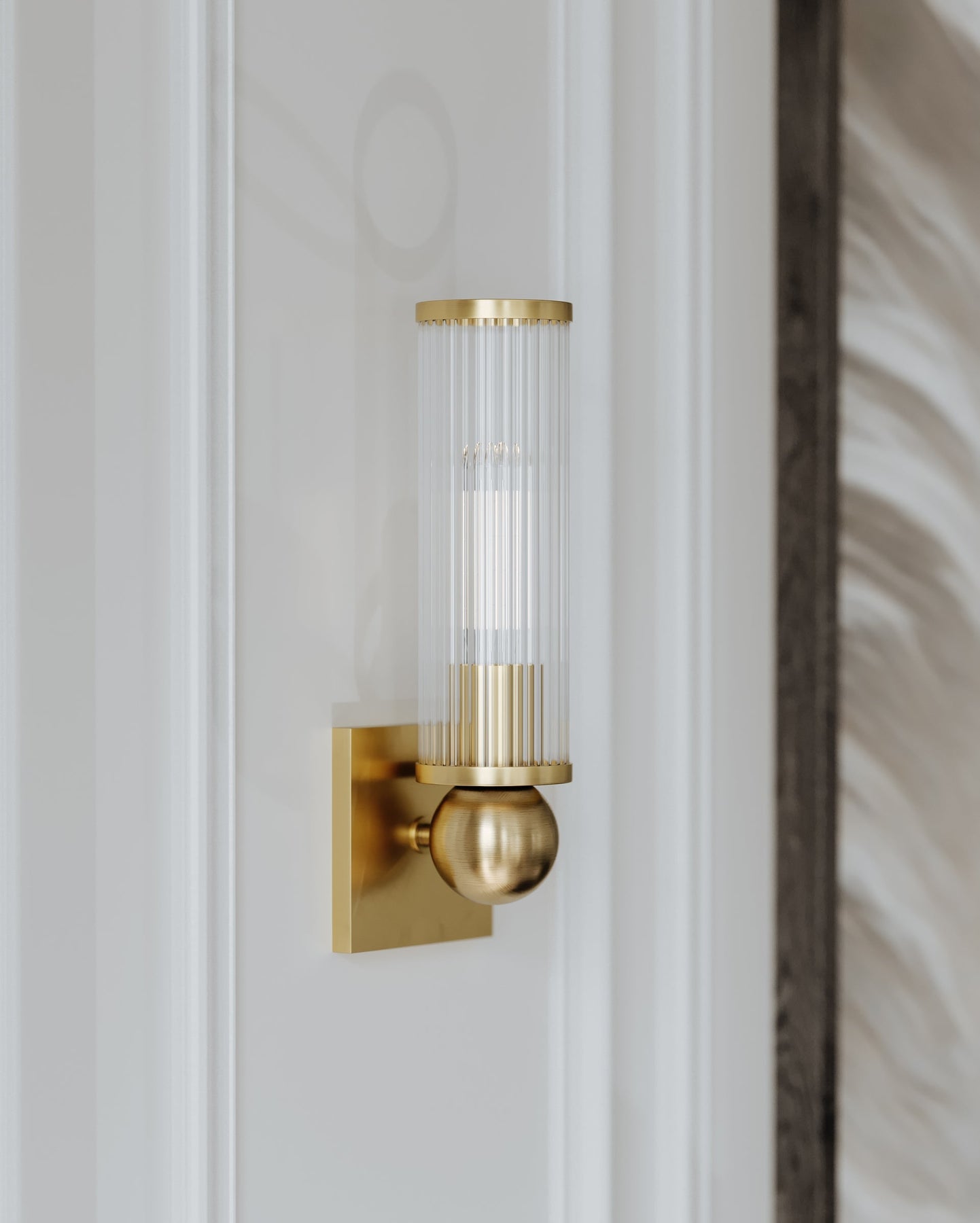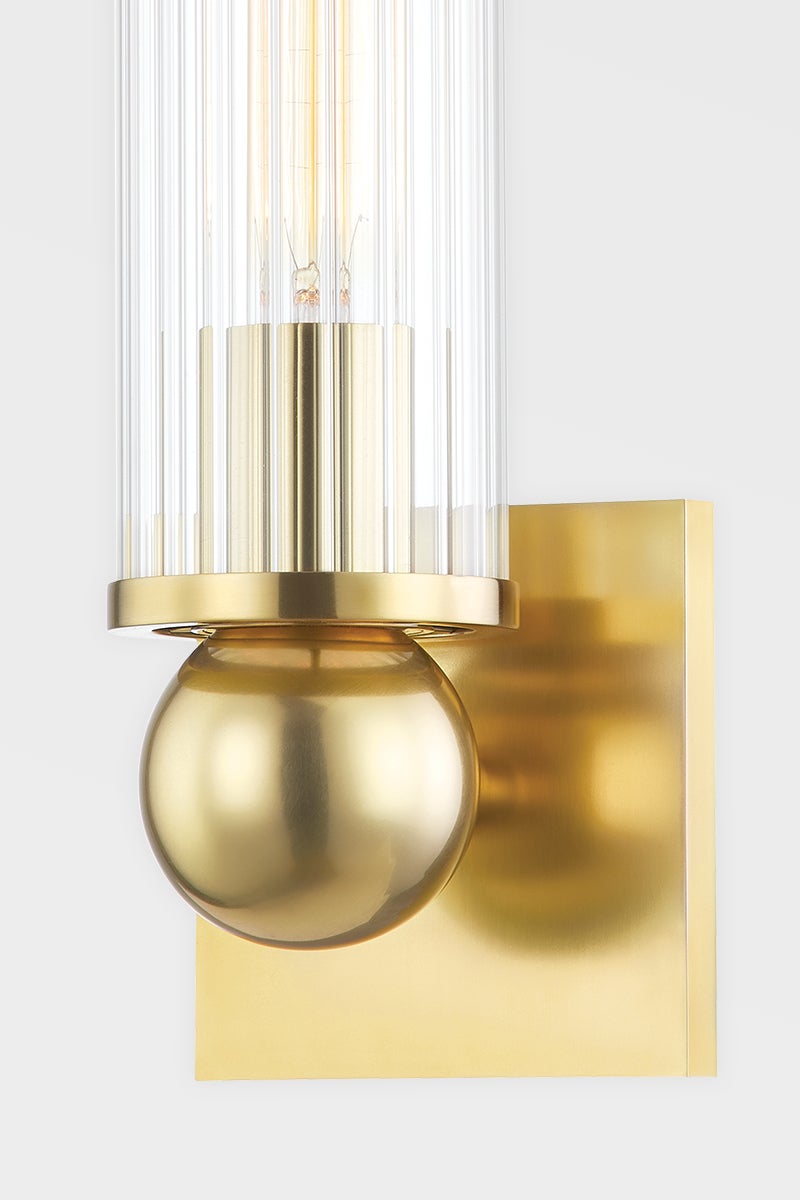 The Malone Wall Sconce by Hudson Valley Lighting is a sophisticated addition to any space, featuring a sleek, clear glass shade that beautifully diffuses light. This sconce stands 13.50 inches tall and has a width of 4.50 inches, with a 4.00-inch extension from the wall, making it perfect for illuminating entryways or cozy corners. It requires one E26 medium base bulb (not included) with a maximum wattage of 60W and is available in elegant finish options such as Aged Brass and Polished Nickel. Additionally, the Malone is UL Damp rated, ensuring safe use in bathrooms and other humid environments.