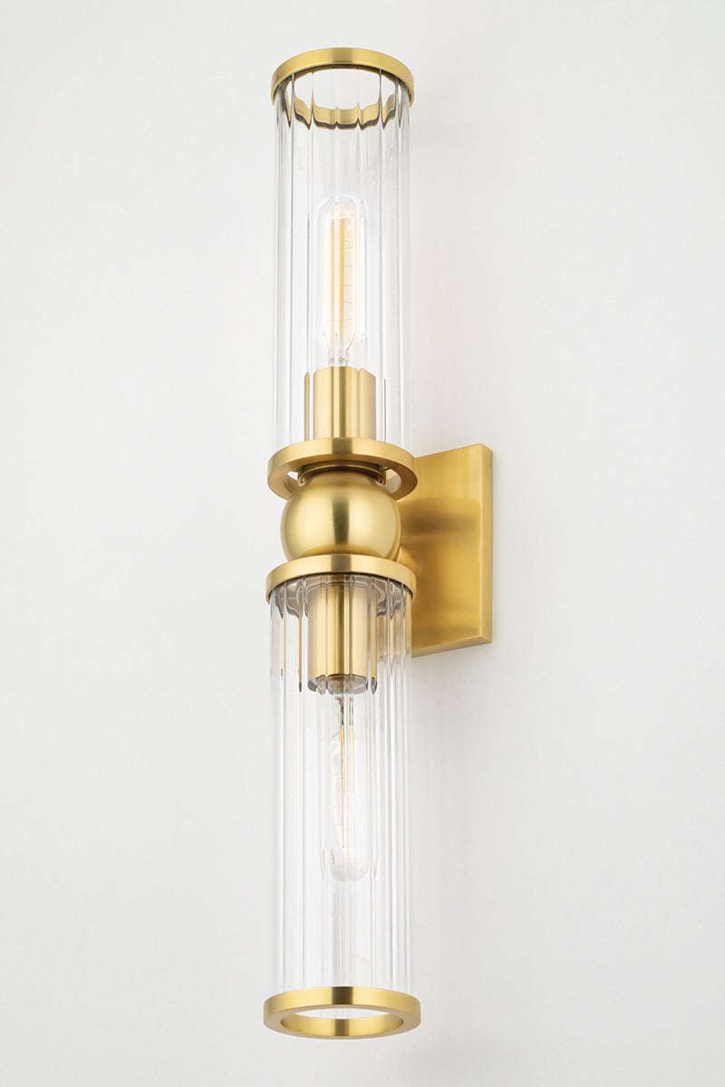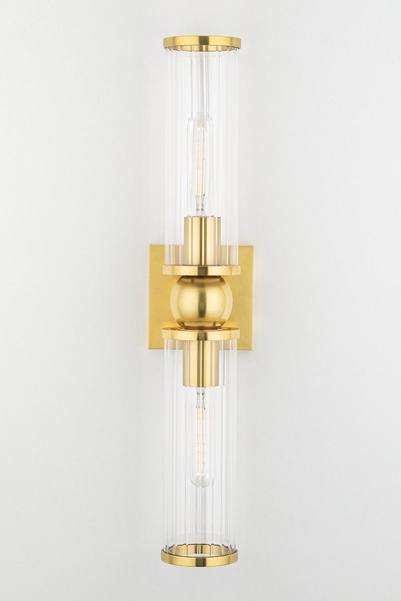 The Malone Wall Sconce by Hudson Valley Lighting is a sophisticated lighting fixture that embodies both elegance and functionality. Standing at a height of 22.25 inches and featuring a 4.50-inch width, it makes a stunning addition to various decor styles. The sconce accommodates two E26 medium base bulbs, with a maximum wattage of 60W each, ensuring ample illumination for any space. The clear glass shade beautifully diffuses light while the aged brass and polished nickel finish options enhance its appeal. With a 4.00-inch extension and a top-to-center measurement of 11.25 inches, it is perfect for any wall. This fixture is UL Damp rated, allowing for use in areas where moisture may be present.