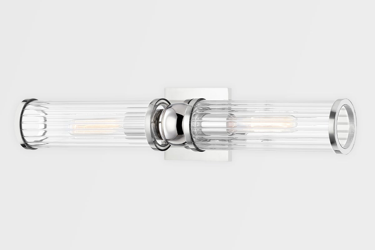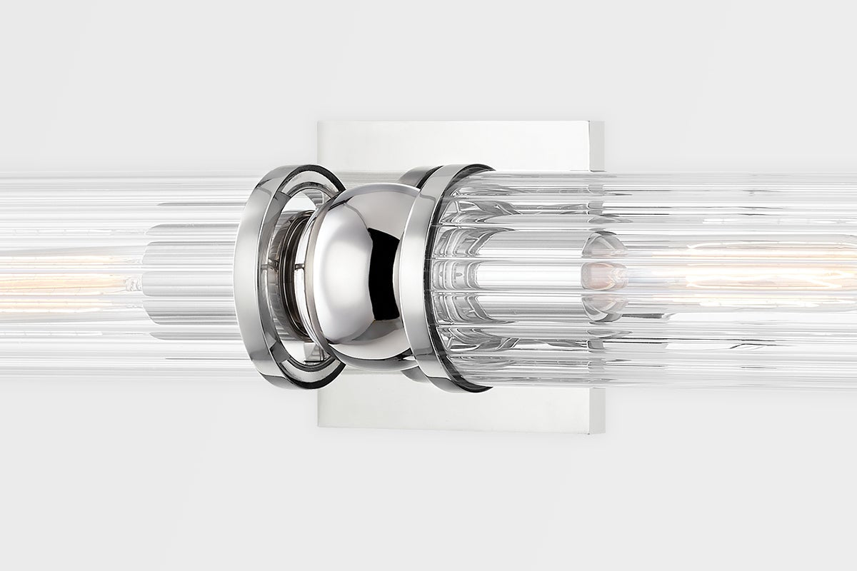 The Malone Wall Sconce from Hudson Valley Lighting features a sleek design with a clear glass shade, measuring 4.50 inches in width and 22.25 inches in height, complemented by a 4.00-inch extension. This stylish fixture requires two E26 medium base bulbs, each with a maximum wattage of 60W, and is recommended to use T10-5.5 bulbs (not included). Available in Aged Brass and Polished Nickel finishes, this sconce is UL Damp rated, making it an ideal choice for bathrooms and other humid environments.